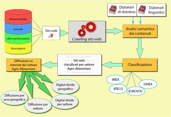 • Analysis of diffusion of the different agri-food sectors on the Internet